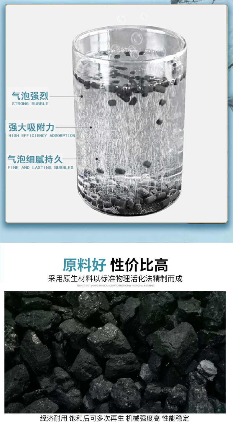 四、顆粒炭和粉狀炭作用相同,但顆粒炭不易流失所以容易再生重復(fù)使用,相對(duì)粉狀活性炭來(lái)說(shuō)顆粒炭更適合用于污染較輕、需連續(xù)運(yùn)行的水處理工藝,但是粉狀炭目前不易回收所以一般為一次性使用,相對(duì)于顆?;钚蕴克m用于間歇地污染較重的水處理工藝。