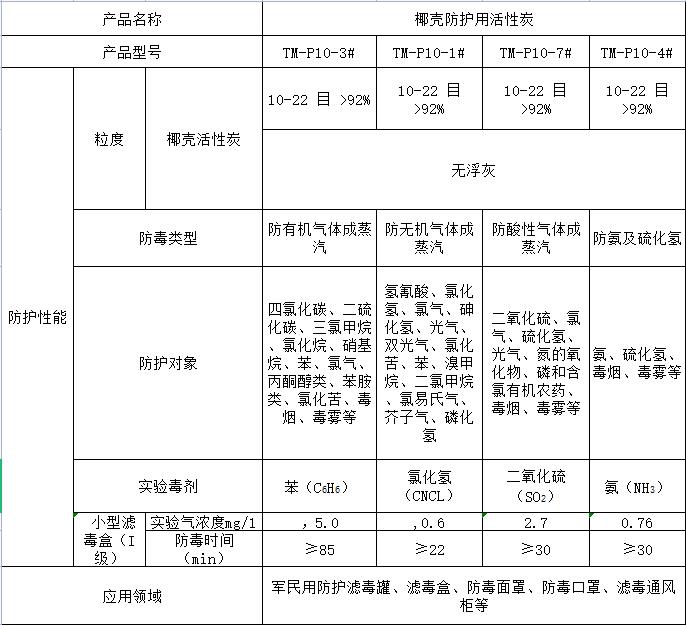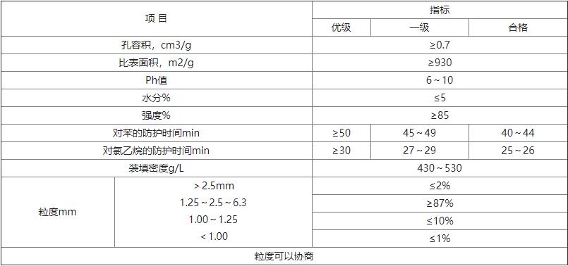 椰殼防護活性炭技術(shù)指標應符合下表要求: