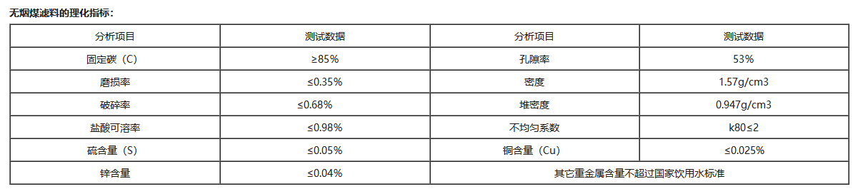 無煙煤濾料的技術(shù)要求: