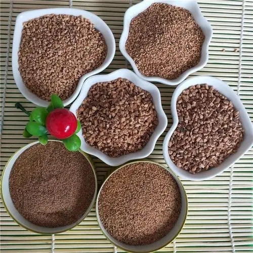 果殼濾料采用植物果殼為原料,經(jīng)破碎、拋光、蒸洗、藥物處理和多次篩選加工而成??刹捎玫闹参锕麣び泻颂覛?、椰子殼等。果殼濾料具有耐磨、抗壓、不在酸堿性水中溶解、不腐爛、不結(jié)塊、易再生,較強(qiáng)的除油性能等優(yōu)點(diǎn),被廣泛運(yùn)用在各種廢水處理(特別是含油廢水)中。果殼濾料是取代石英砂濾料來提高水質(zhì)、大幅度降低水處理成本的新一代濾料。